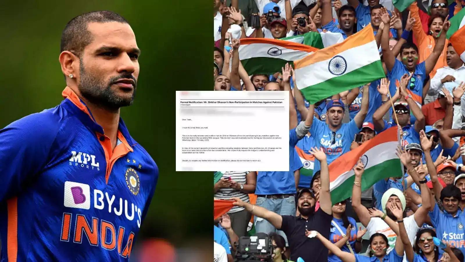 वर्ल्ड चैंपियनशिप ऑफ लीजेंड्स 2025 टूर्नामेंट में भारत चैंपियंस और पाकिस्तान चैंपियंस के बीच होने वाले आगामी मुकाबले के लिए शिखर धवन ने भारतीय टीम से अपना नाम वापस ले लिया है।