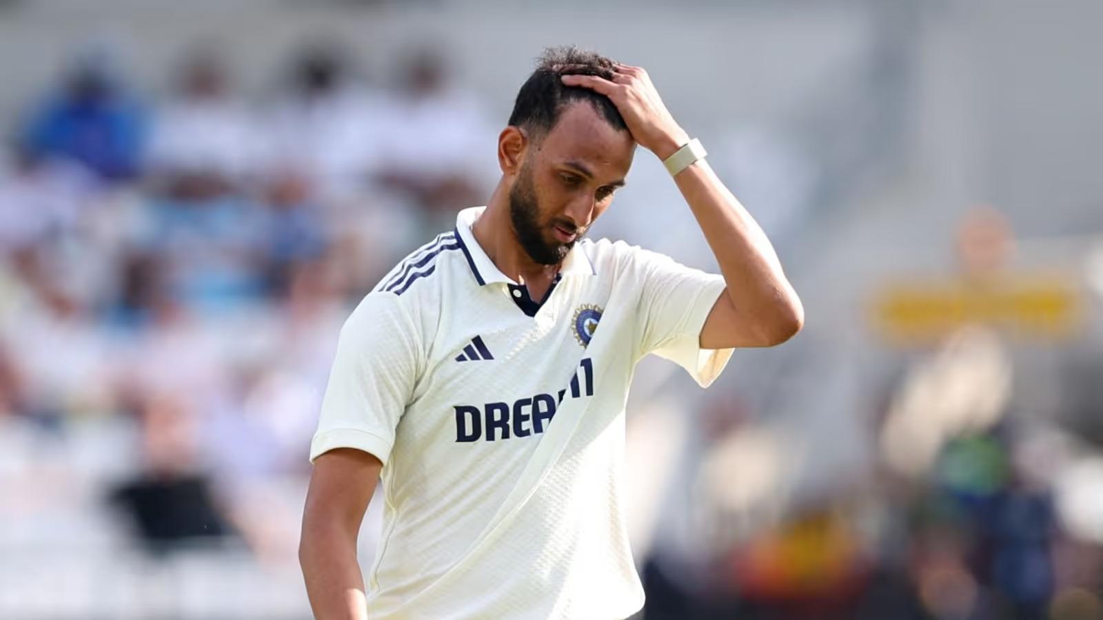 भारतीय तेज गेंदबाज प्रसिद्ध कृष्णा को पुल शॉट का प्रयास करते हुए हेनरी थोरंटोन की गेंद हेलमेट पर लगी।